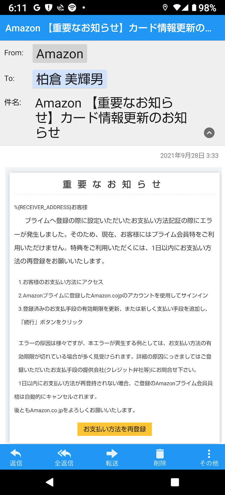 個人的にアマゾンはキャリア決済なので、こんな事はありえん。その前に携帯電話が通じなくなるし、大体キャリアメールになんぞに紐づけしていない。
