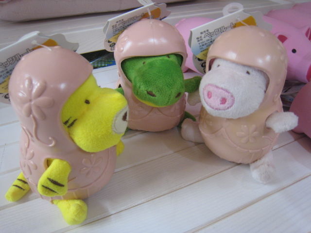 今回入荷したモノは、結構ハードに遊べる優れもの。日本初のヤク(と言う動物)のミルクから作った犬用の硬化チーズや、こんな可愛いぬいぐるみたち。その名も『かぶりもの』(超安直なネーミング)