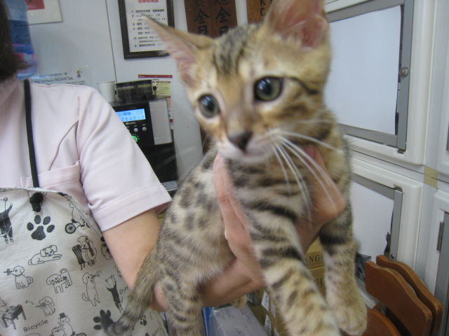 ベンガルは、決して大人しい種類じゃないですが、こちらのブリーダーさんの所の猫は、比較的安定している穏やかな性質の子が多い。