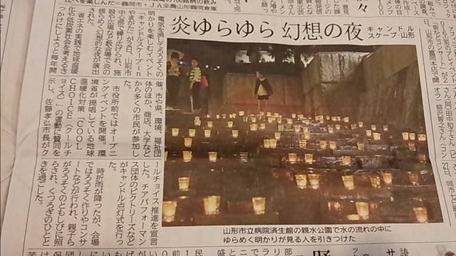 昨夜の『キャンドルスケープ in やまがた』皆さん、お楽しみいただけましたでしょうか?悪天候に見舞われてしまいましたが、見事に、山形新聞さんの枠は、当商店会のイベント会場がばっちり載っていたようです。