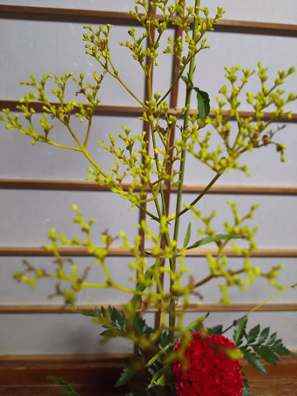 女郎花【オミナエシ】と言う植物。熟成と共に、嫌な臭いを出す。なんの為に?蠅さんに、受粉を受け持ってもらっているらしい。薬草として用いられたり、敗醤等と呼ばれたりすると言う。つまり、腐った醤油の事らしいのですが。