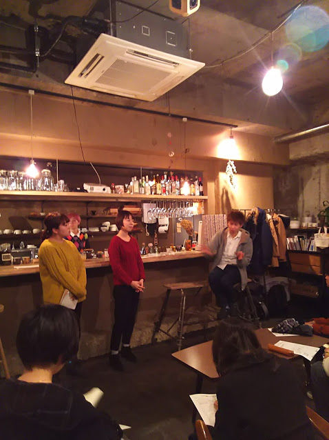 7時から、『BOTA』と言うカフェで、学生と社会人を繋ぐ、講演会(?)みたいな事がある。このカフェの若きマスター佐藤さんのお話を聞く。