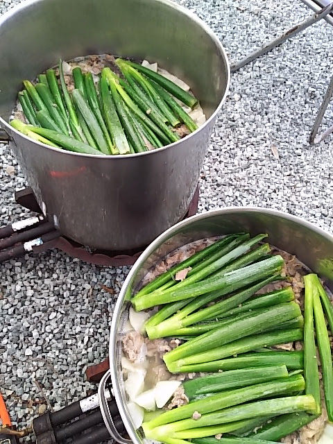テントを張って、煮込みの調整を始める。1時半から煮始めて、3時半くらいにそこそこの状態になるが、いつもより、筋がちょいと固い。