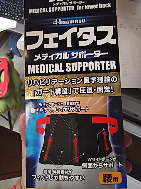 致し方ないので、腰痛用のサポーターを購入。結構、高価。これで効けばと思ったのだが、多少良いという程度である。(個人の感想です。)