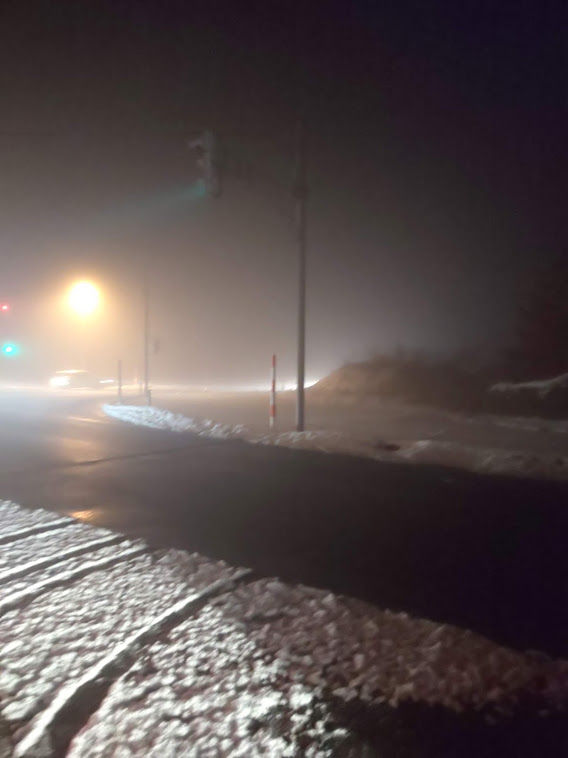 濃霧と言う感じだ。気温はー3度になっている。急激に地面が冷たくなって霧が出ているのであろうか?