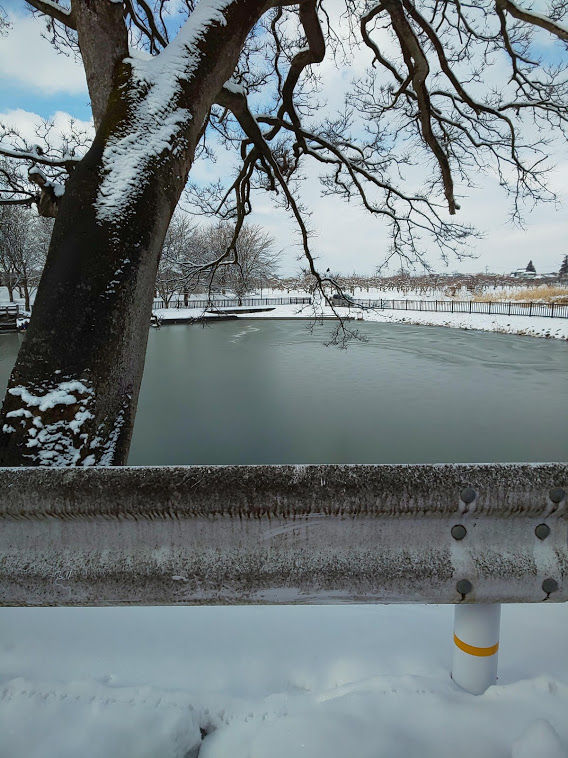 ここは昨日も通ったのだが、秋から冬、春にかけて太宰治の『津軽』の中の風景を彷彿とさせる。最近ではあまり見かけなくなったが、モミがら等を焼いていると尚の事だ。