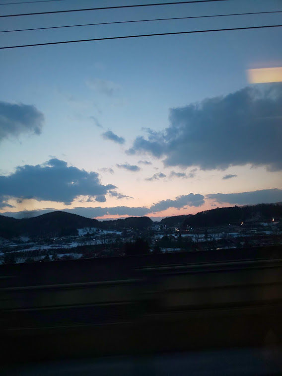 4時過ぎの新幹線に乗り、車窓から外を見ていると、外はまだまだ明るく、それでも夕刻の迫る少しの時間。売店で購入したアイスコーヒーをチビチビ飲みながら、4時間の帰路に着くのであった。