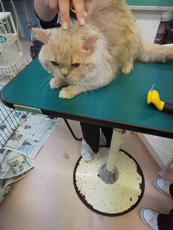 『仕方ないにゃぁ』と言った感じでシャンプーに付き合っている。もちろん毛玉にコーム(櫛)が引っかかったりすると、怒られる。