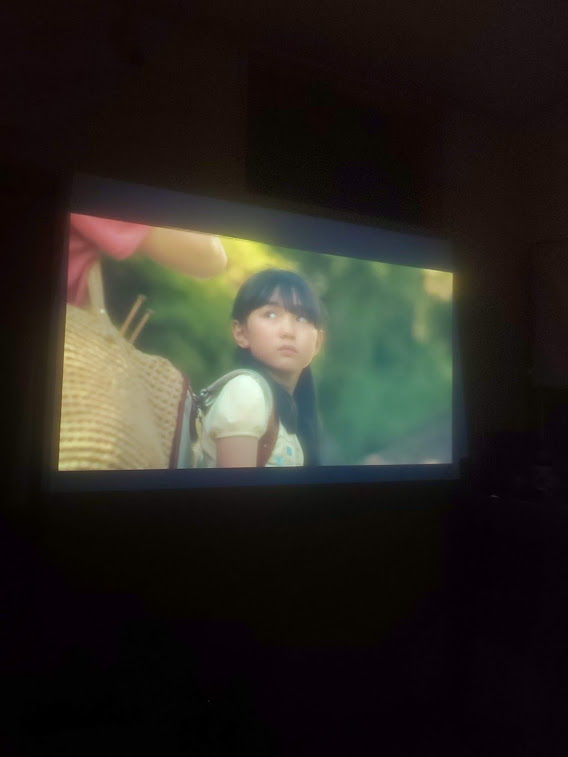 昨日、プロジェクターを置く台を作り、今日改めて試写会。『バースデーカード』と言う、橋本愛さんが出ているヤツ。
