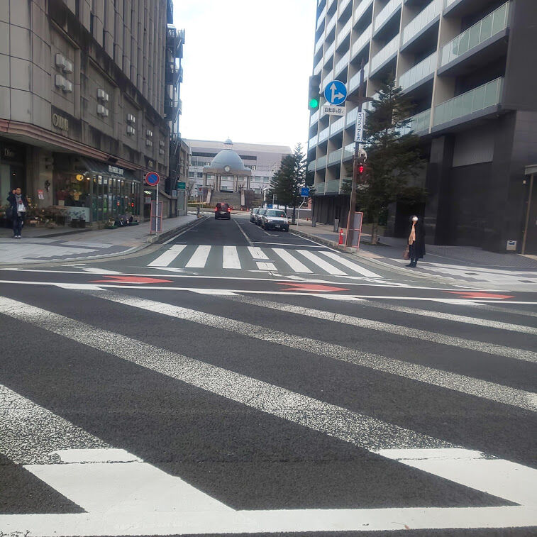 山形は1月とは思えないような、全く雪の無い道路。4kmは山形の駅前から七日町を一周するくらいの距離。