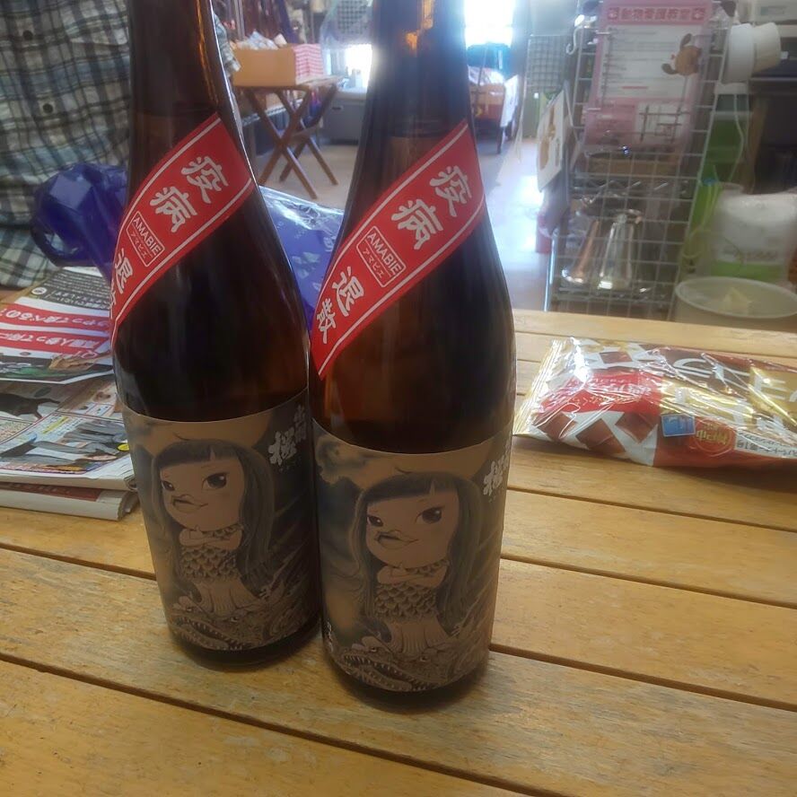中身はスタンダードな出羽桜と言うお酒であるが、ラベルが『アマビエ』さんになっている。知る人ぞ知る疫病を退散させる妖怪の『アマビエ』さんである。