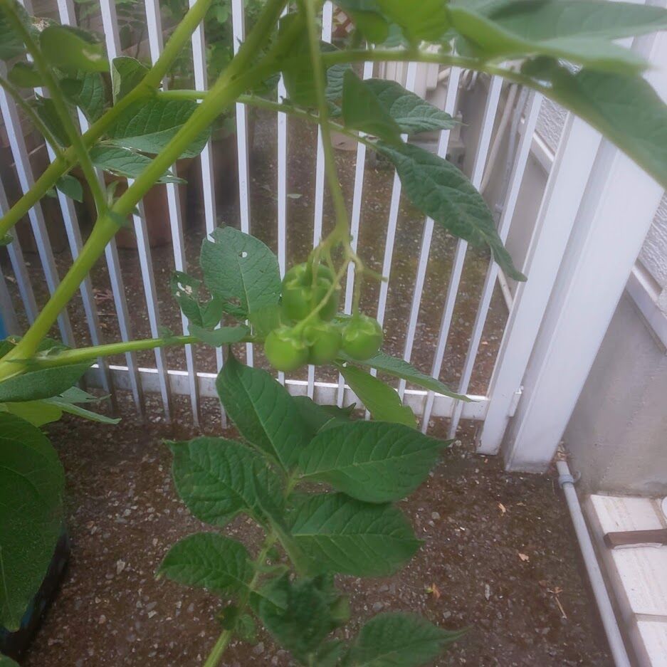 実は、先日、何気なく植えていたジャガイモの花が咲きました。そして、なんと!トマトのような実がなったのです。