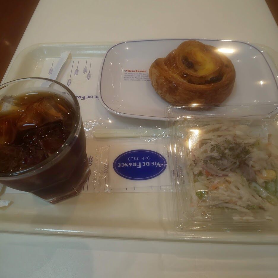 お店は営業日だが、スタッフの二人で対応しててもらい、10時ちょっと前に駅にくっついている『ヴィ・ド・フランス』さんでゴボウのサラダとレーズンのデニッシュ、アールグレイを飲んで、帰宅。