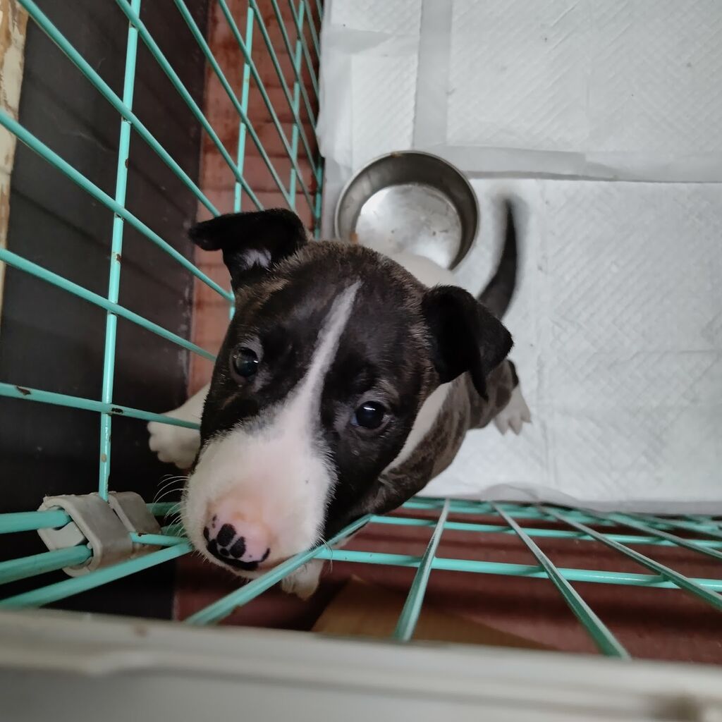 このワンコ、ブルテリアと言う。1980年代の後半から90年代初頭あたりに、バドワイザーと言うビールのキャラクターや、『平成イヌ物語ばう』と言うテリー山本さんの漫画アニメで人気を博した。